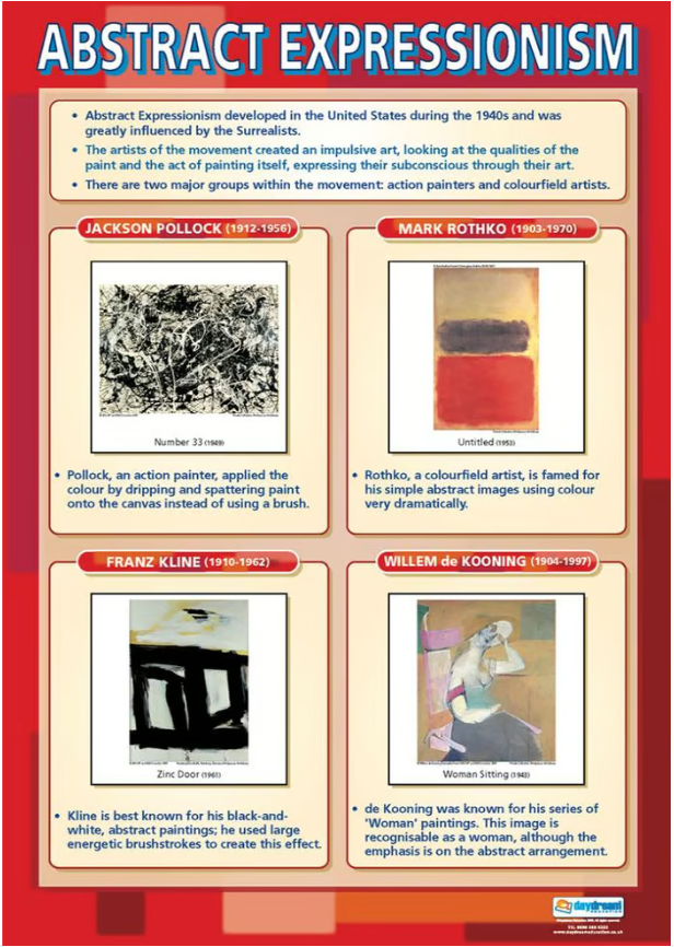 - Foster Creative Thinking: Encourage students to explore their own expressive styles by learning from the pioneers of Abstract Expressionism.