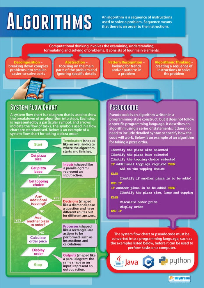 Daydream Education's engaging 3-poster set tackles the world of algorithms, and essential programming concepts: Basic HTML and Procedures & Functions. It's the perfect visual aid for teachers in schools and technology colleges, aligning seamlessly with the current Digital Technology curriculum.
