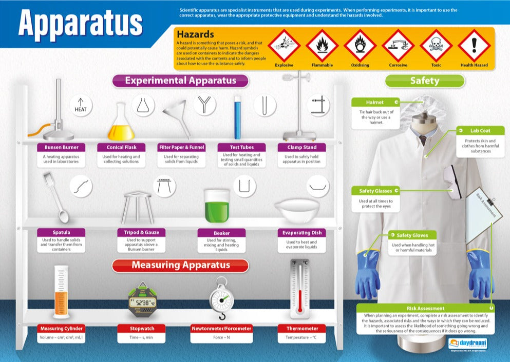 Equip your classroom for scientific exploration with the essential Apparatus Poster!