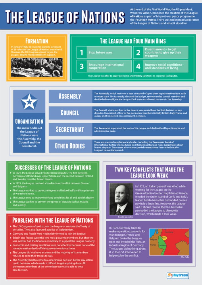 - The League of Nations: Examine the formation of the League of Nations, the first international organisation with the goal of maintaining global peace, and consider its successes and limitations.