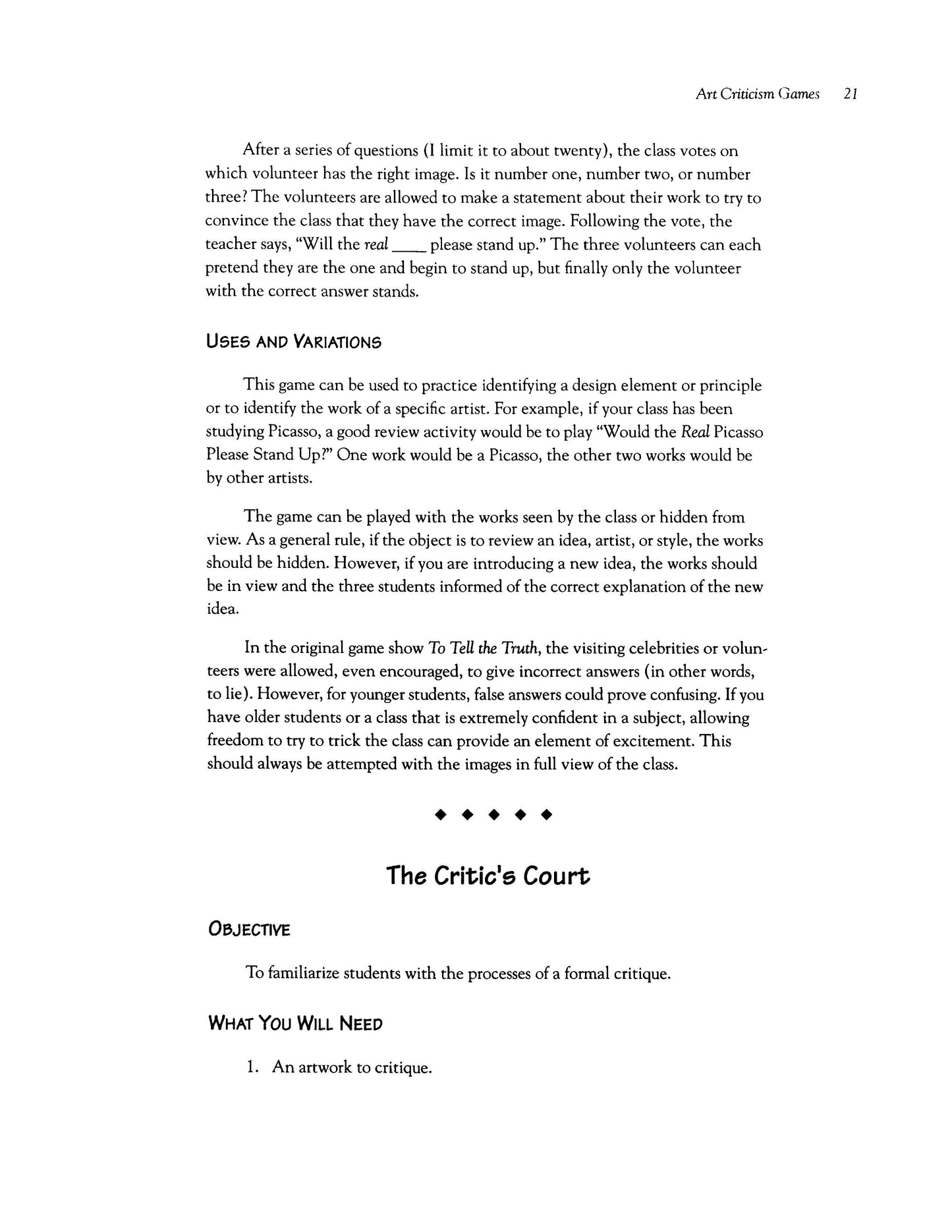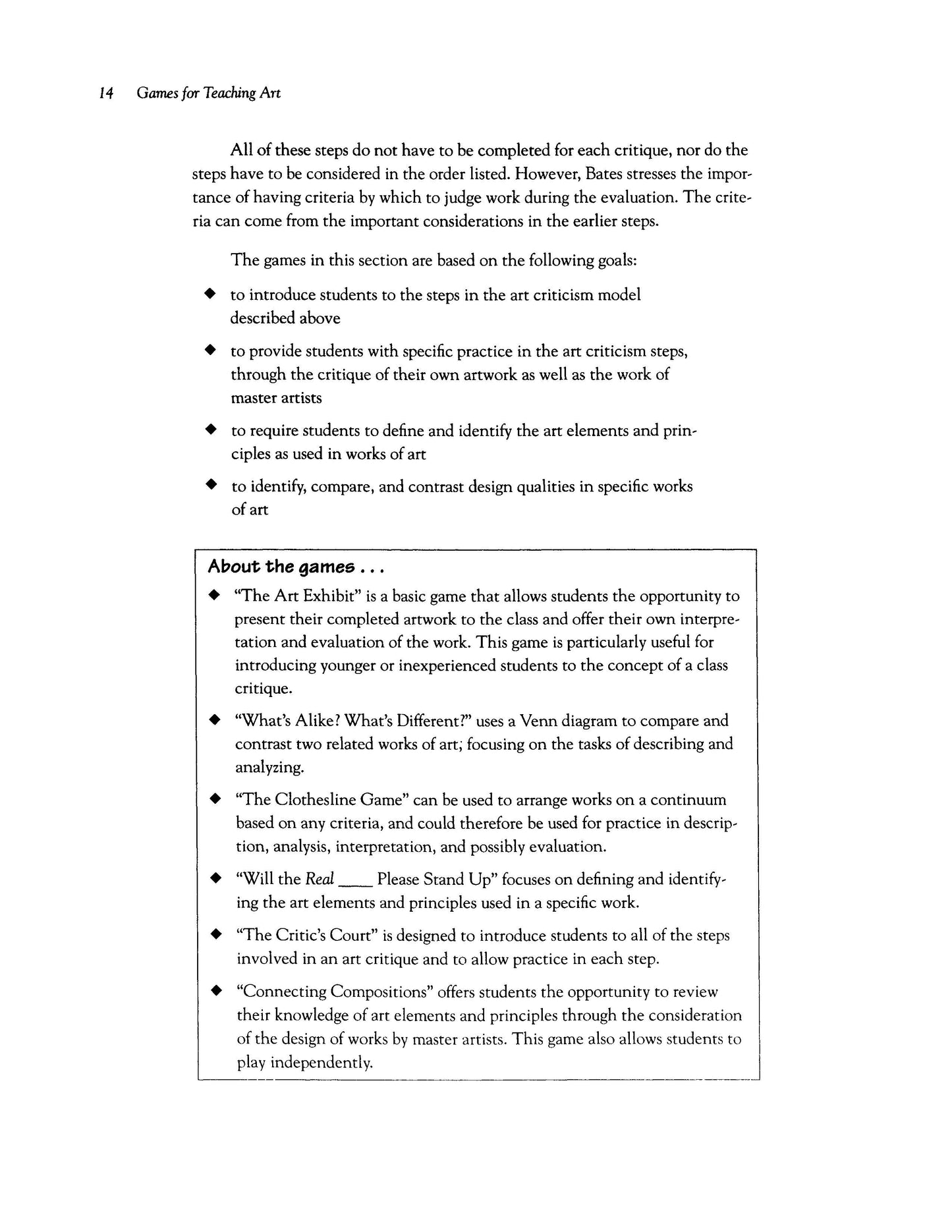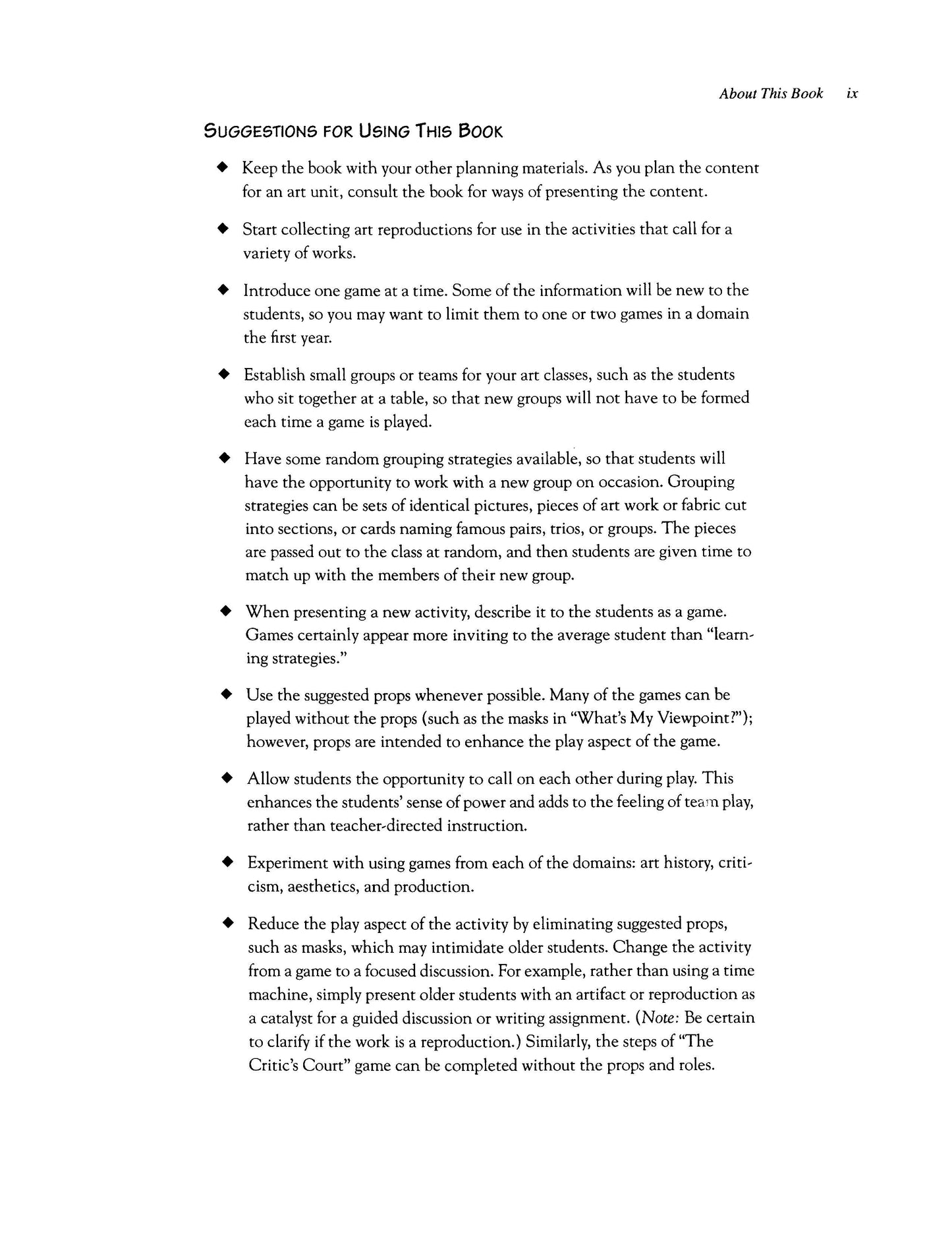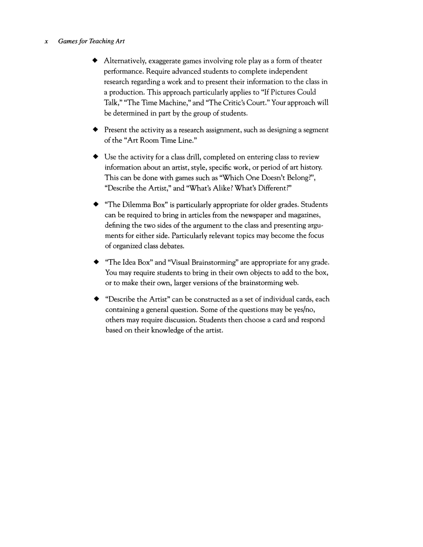 Versatility: Whether you teach a whole class or work with smaller groups, Games for Teaching Art offers adaptable activities suitable for various classroom settings. You'll find valuable resources to suit your teaching style.