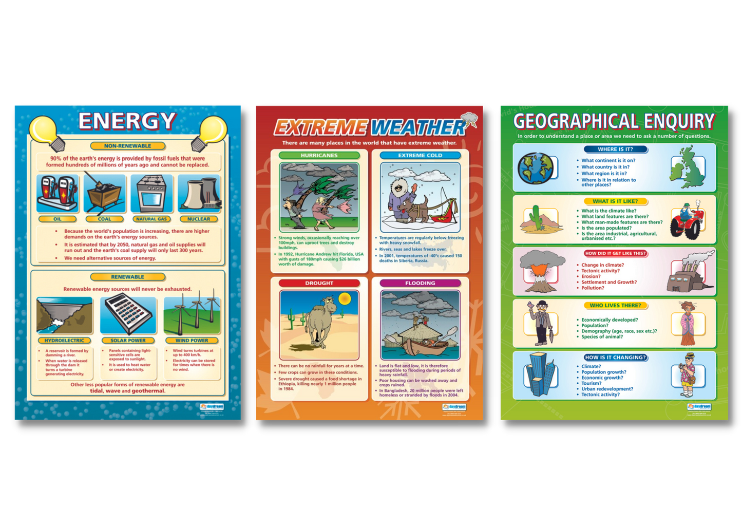 Empower your Geography and Humanities students to explore critical topics with Daydream Education's captivating and informative poster bundle, now available at a special discount! This essential set of three A1 laminated posters caters to a range of learning styles and age groups, making it the perfect addition to any Geography or Humanities classroom.