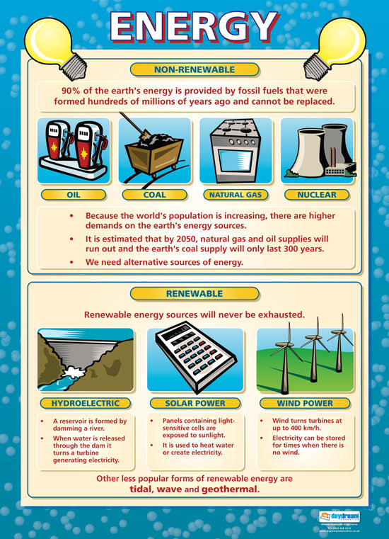 - Energy:Ā Delve into the world of energy sources, from fossil fuels to renewable alternatives. This poster explores the environmental impact of different energy sources and encourages discussions about sustainability.