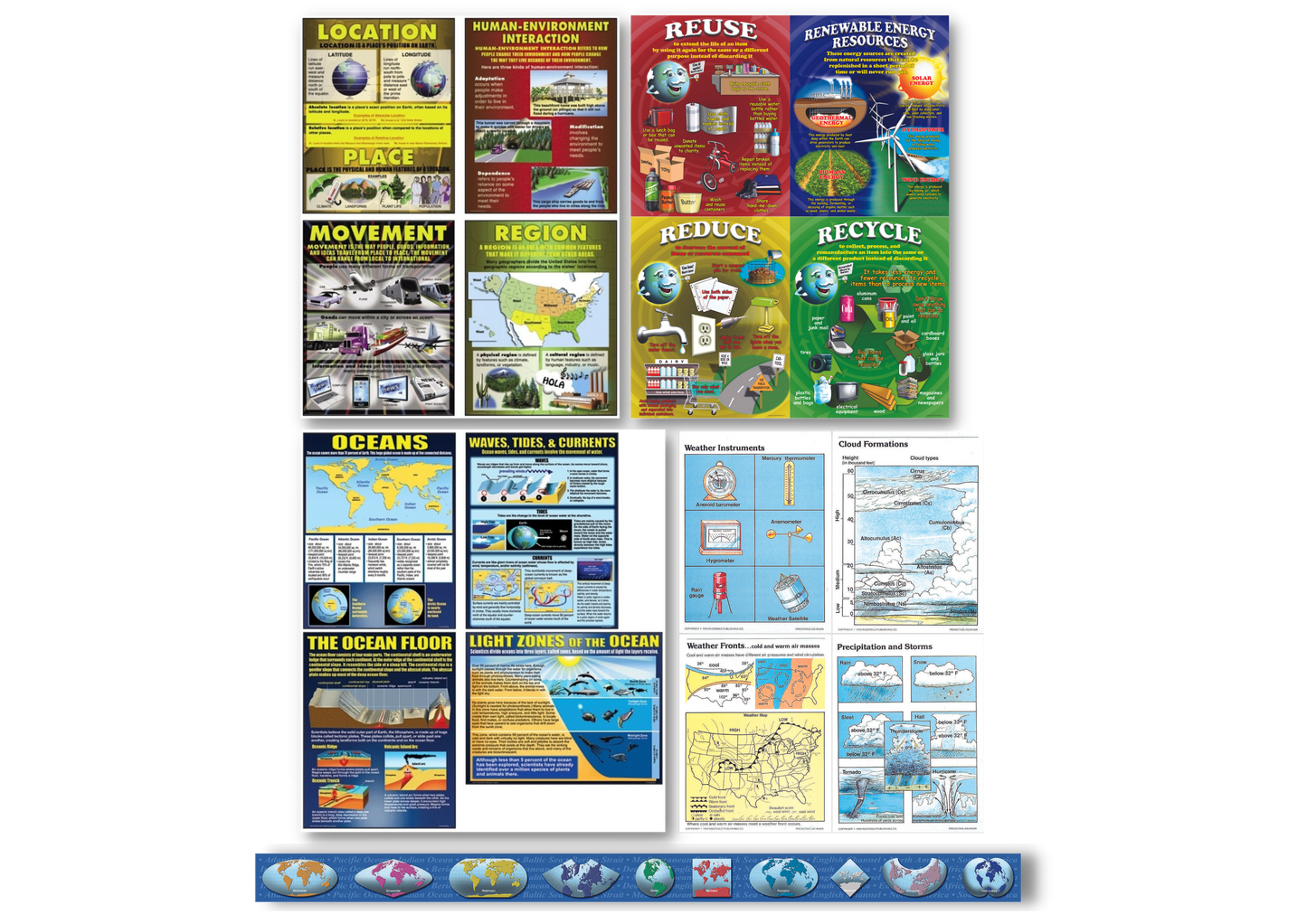 1. Exploring the 5 Themes of Geography (Activity Sheets & Teacher's Guide included): Dive deep into the fundamental concepts of Geography with this four-poster set. It explores location, place, human-environment interaction, movement, and region, fostering a holistic understanding of the world around us.