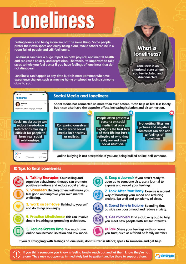 Empower your school community with the knowledge to navigate the digital landscape positively. Order the Loneliness Poster now to foster resilience and wellbeing among students. Address the impact of social media on mental health, break the cycle of loneliness, and contribute to creating a healthier and happier learning environment.