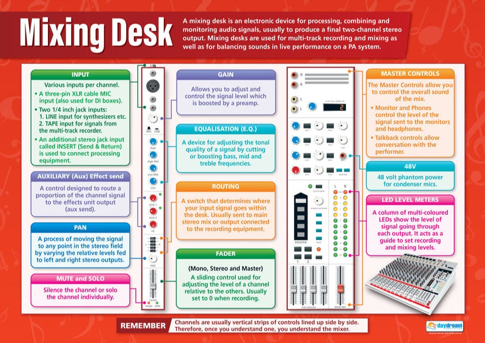 🎚️ Mixing Desk: Learn about channels, equalizers, effects processing, and crafting a polished final mix.