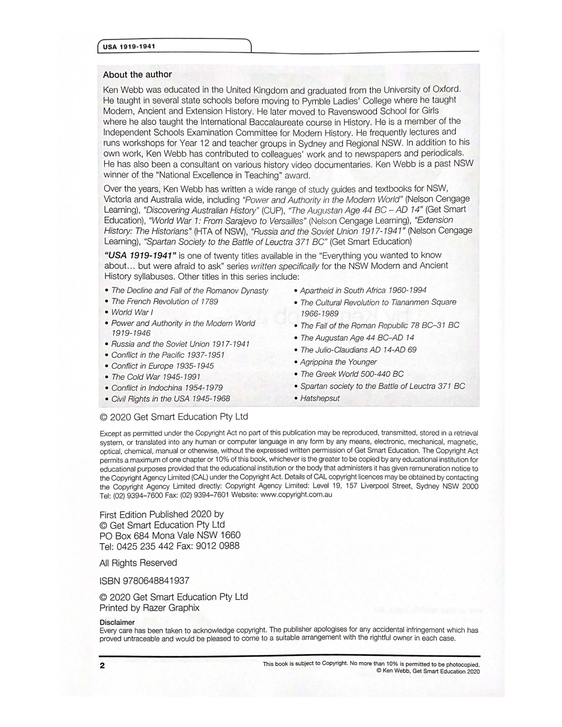The new editions of Ken Webb’s topic books have been written with the New South Wales HSC Modern History Examination in mind. They strictly follows the outline of the NEW HSC history syllabus (2018-19). However, the format, detail and historiography it contains make each book an ideal companion for students in other states and overseas who are studying these topics.