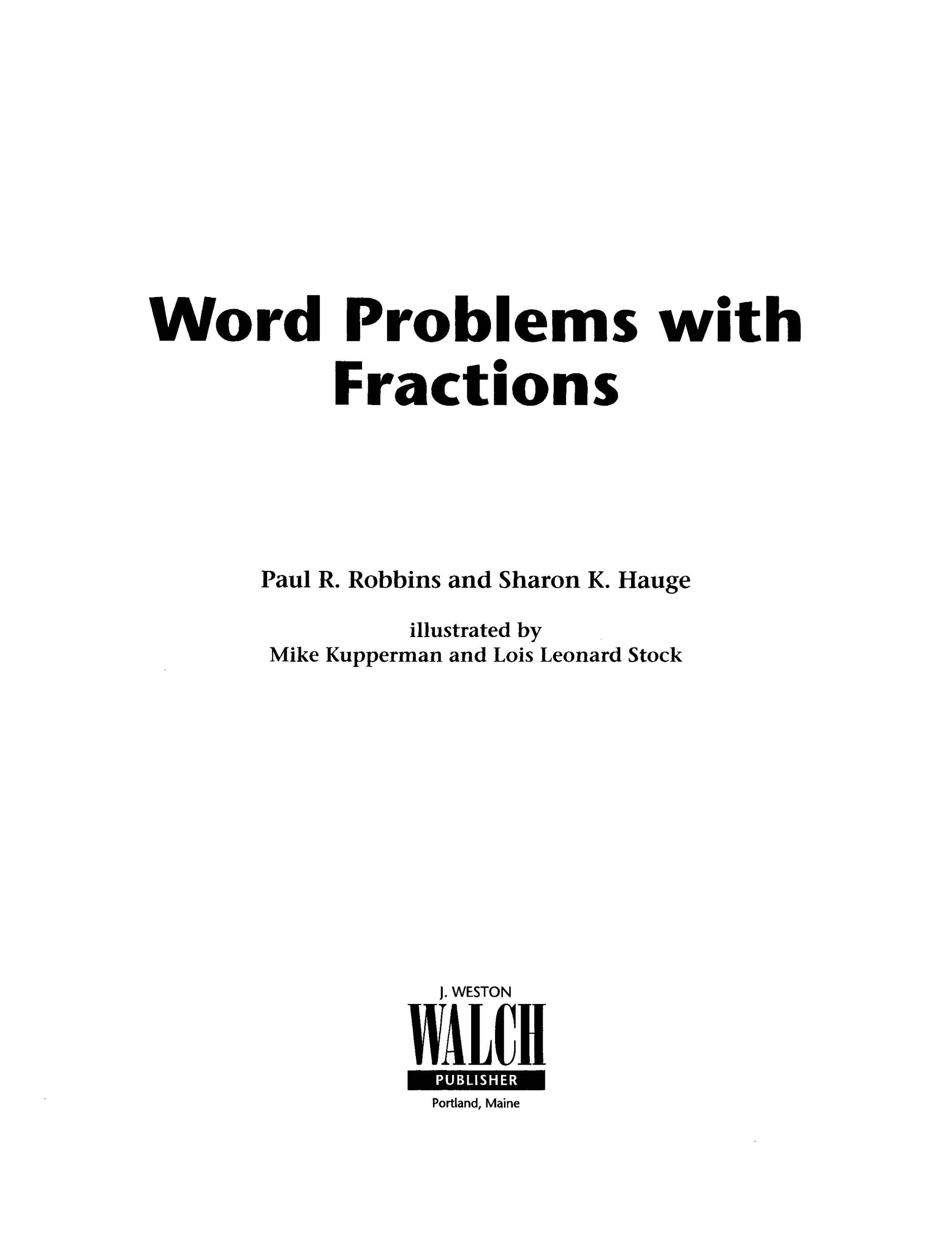 Word Problems with Fractions Book