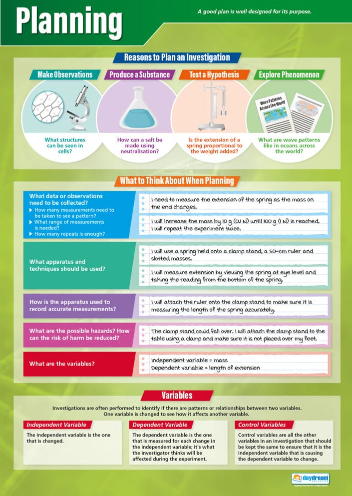 - Planning: Guide students through the essential steps of planning a scientific investigation, from formulating a question and hypothesis to designing a controlled experiment.